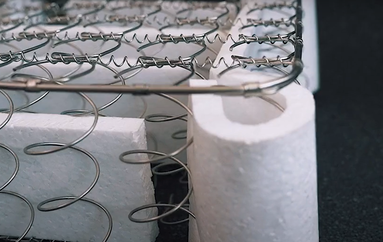 Las barras de soporte lumbar y perimetral fabricadas con Arpak, colocadas dentro de la unidad de resortes, brindan una sensación excelente de firmeza en los colchones.